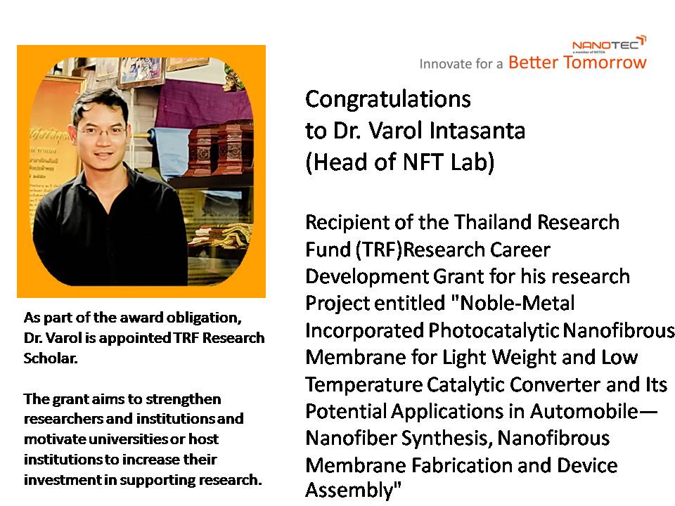 Congratulations to Assoc. Prof. Prasert Pavasant, Senior Advisor to NANOTEC and Lecturer at Dept of Chemical Engineering, Chulalongkorn University recipient of the Thailand Research Fund (TRF) Grant