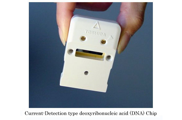 A DNA chip consists of a few hundred to ten thousand types of DNA fragments which are densely placed on a glass or resin substrate.