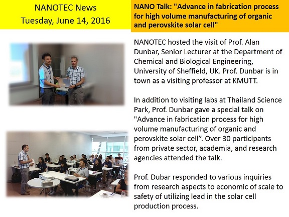 NANO Talk: “Advance in fabrication process for high volume manufacturing of organic and perovskite solar cell​”