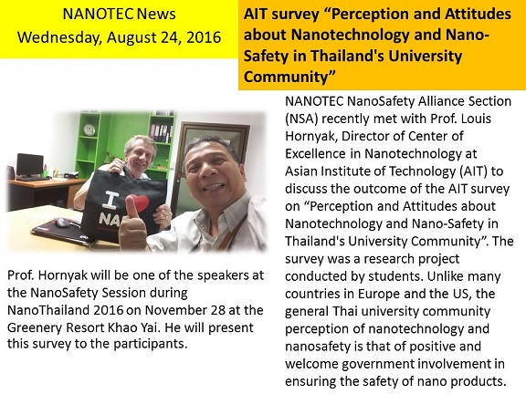 AIT survey “Perception and Attitudes about Nanotechnology and Nano-Safety in Thailand’s University Community”