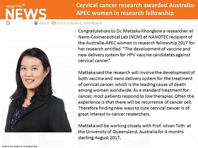 Cervical cancer research awarded Australia-APEC women in research fellowship