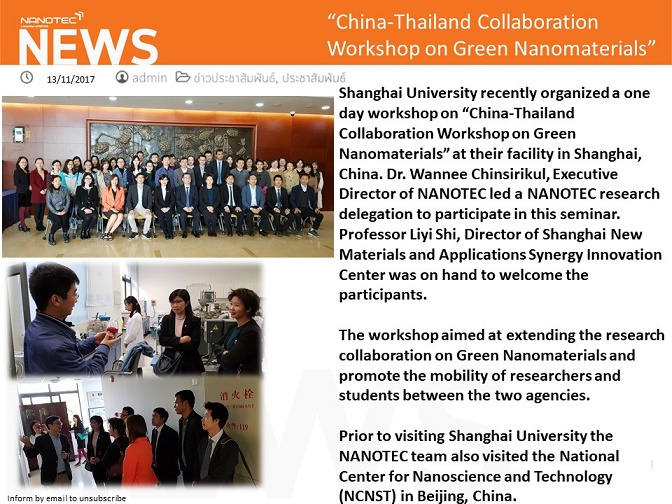 “China-Thailand Collaboration Workshop on Green Nanomaterials”