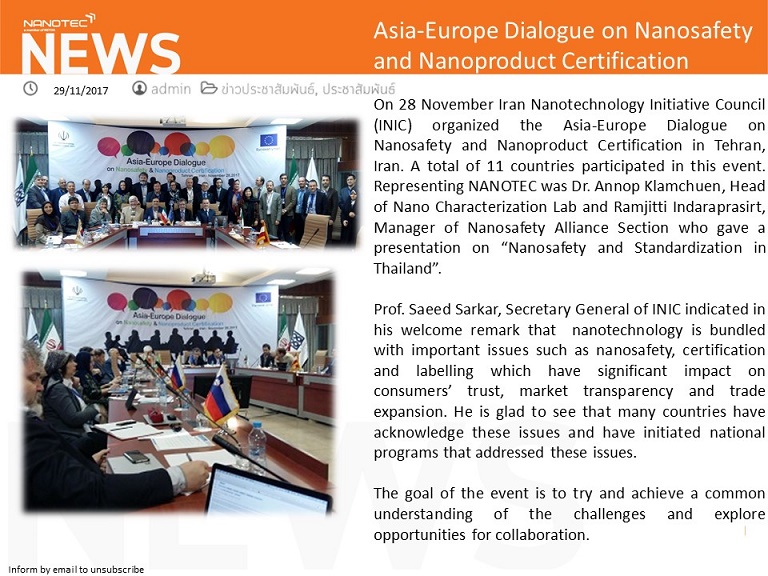 Asia-Europe Dialogue on Nanosafety and Nanoproduct Certification