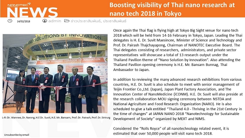 Boosting visibility of Thai nano research at nano tech 2018 in Tokyo