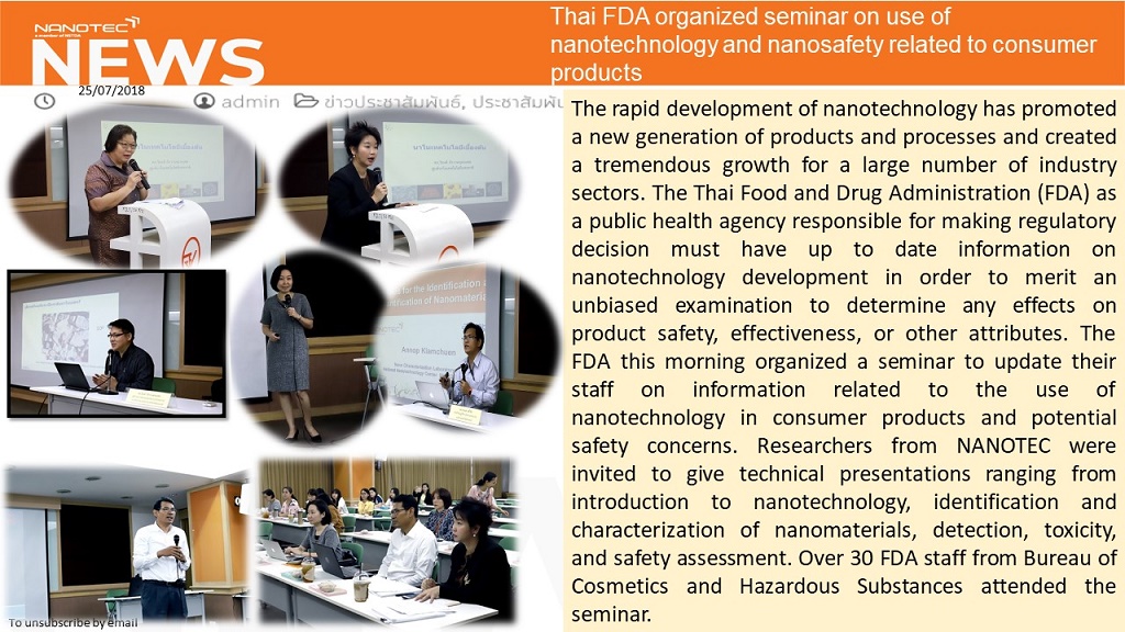 Thai FDA organized seminar on use of nanotechnology and nanosafety related to consumer products