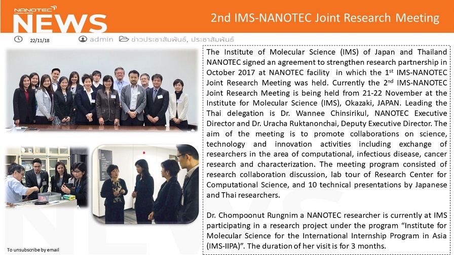 2nd IMS-NANOTEC Joint Research Meeting in Japan