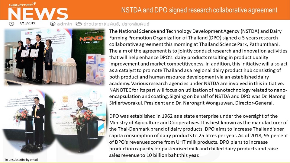 NSTDA and DPO signed research collaborative agreement