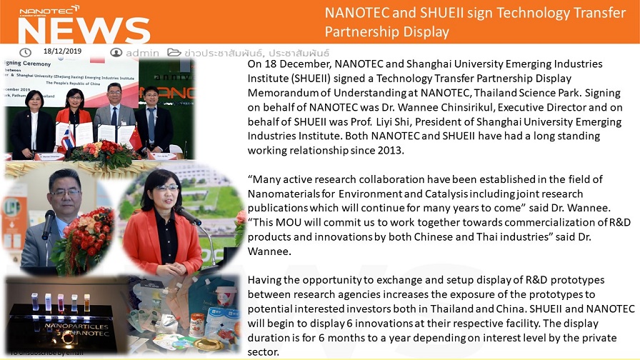 NANOTEC and SHUEII sign Technology Transfer Partnership Display