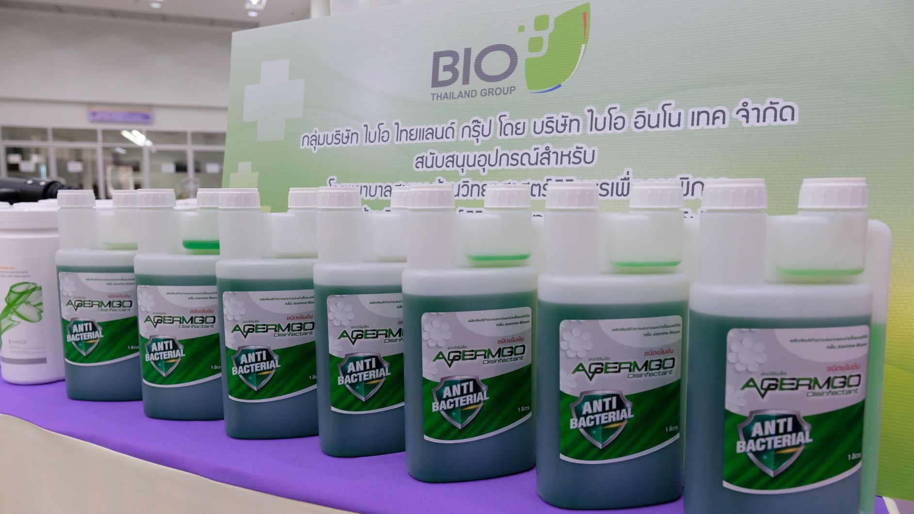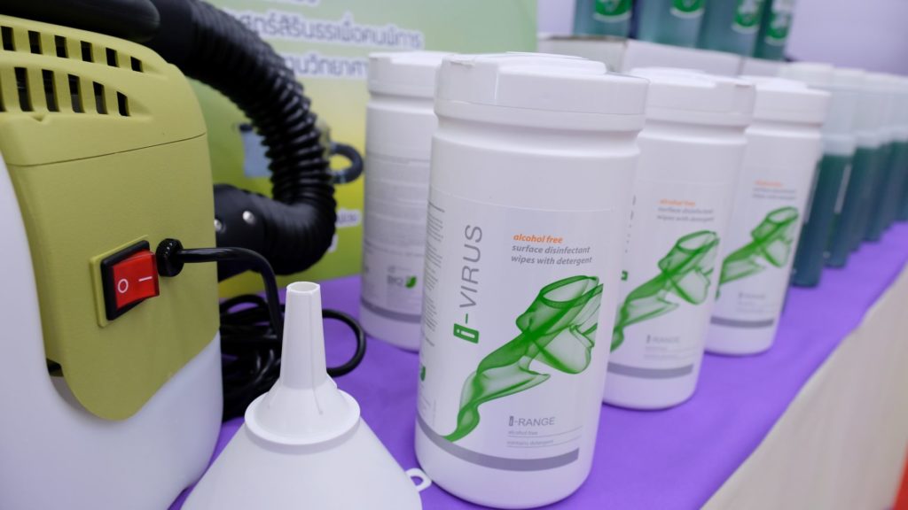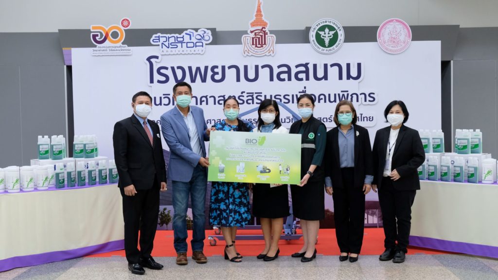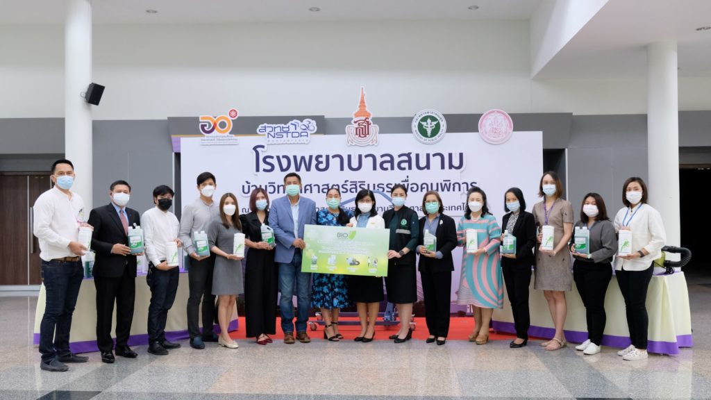 In this regard, the representatives from the Department of Empowerment of Persons with Disabilities, the Department of Empowerment of Persons with Disabilities, and the Sirindhorn National Medical Rehabilitation Institute (SNMRI) joined the ceremony. The medical supplies include “AGERMGO” the nanotechnology-based disinfecting product which was the product co-invented with NANOTEC research team led by Dr. Warayuth Sajomsang and funded by iTAP. The product is based on chelation and nanoemulsion technologies that can effectively kill bacteria and virus on any surfaces.
