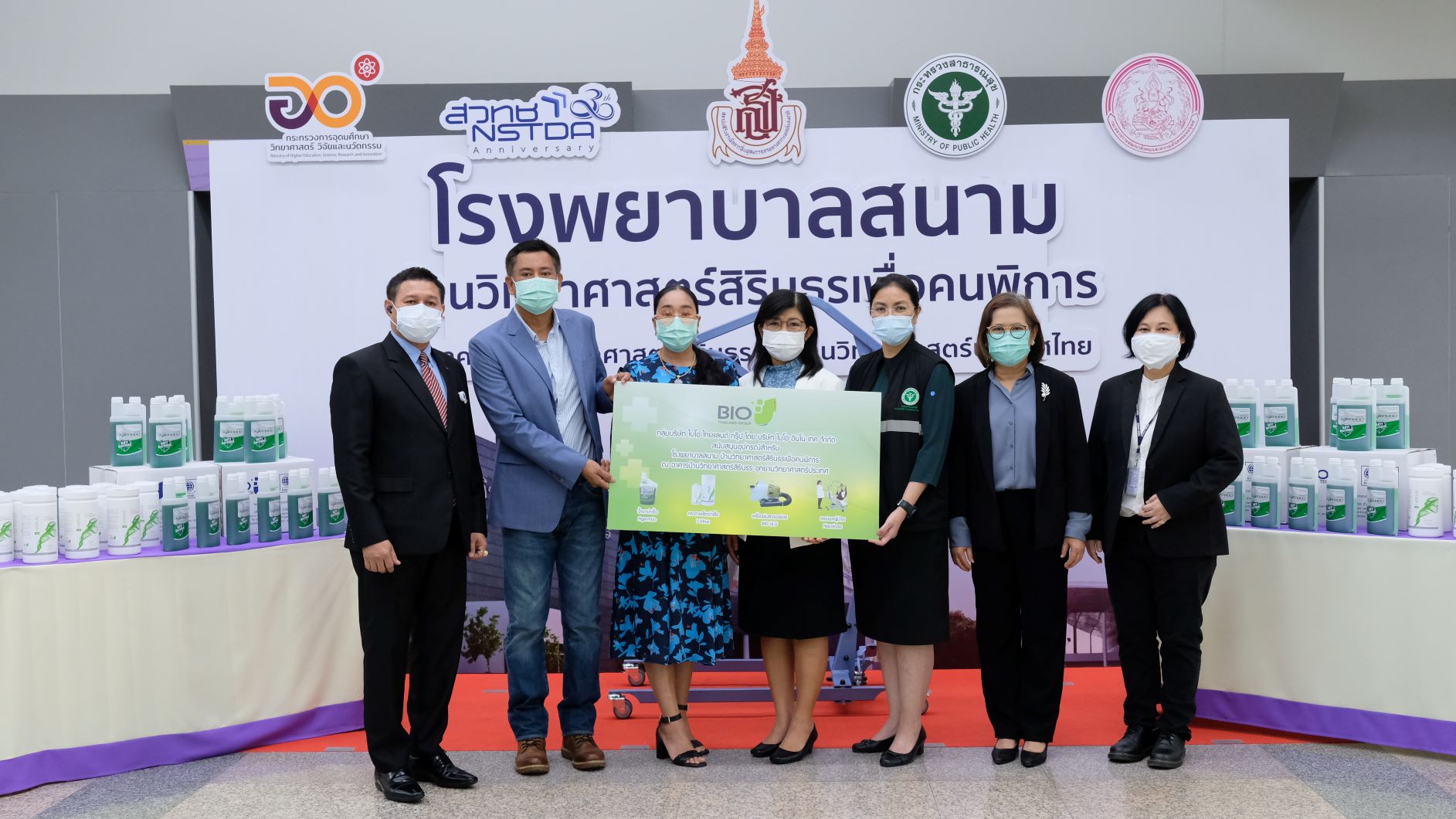 [28 May 2021] Dr. Wannee Chinsirikul, the Director of National Nanotechnology Center (NANOTEC), along with Dr. Pawadee Aungwattana, the Deputy Director of the National Nanotechnology Center, and Ms. Kullaprapa Navanugraha, the Vice President of NSTDA received medical supplies and equipment for facilitating disable patients from the executives of Bio Inno Tech (Thailand) Co., Ltd. to support the Sirindhorn Science Home Field Hospital for the disabled.