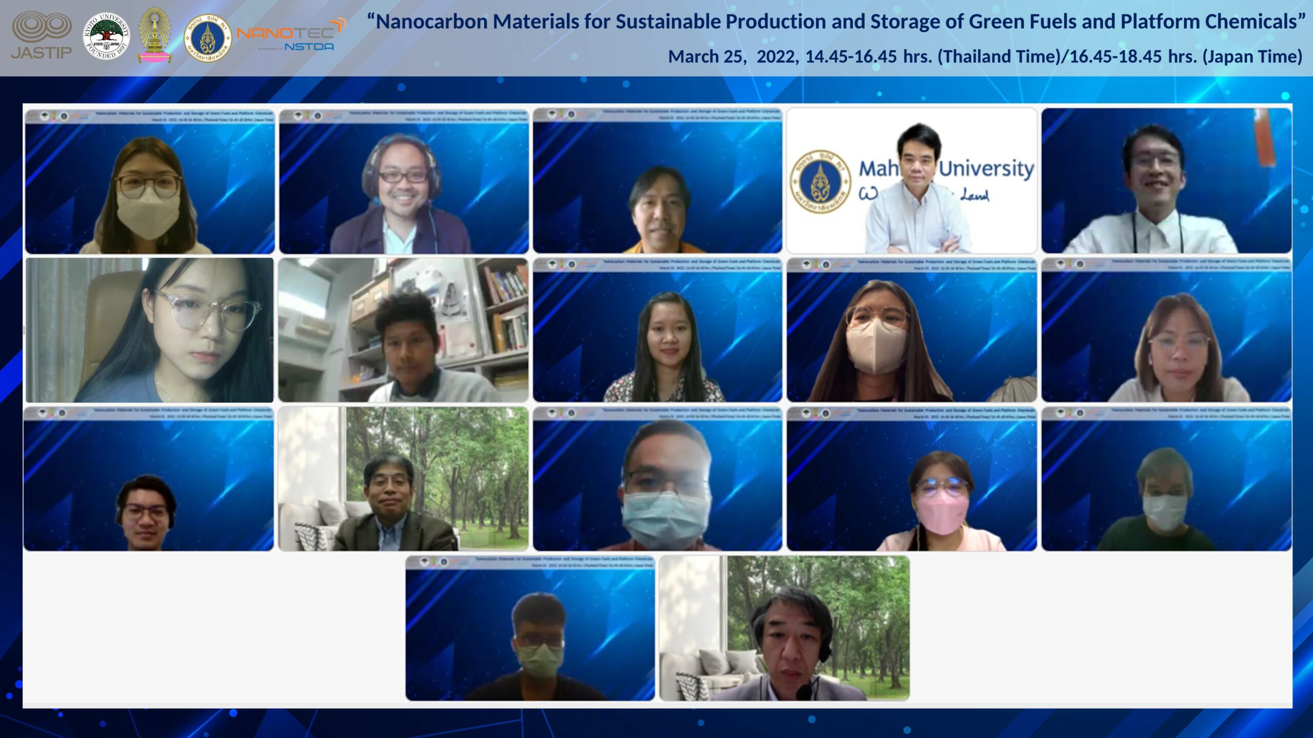 On 25 March 2022, National Nanotechnology Center (NANOTEC), NSTDA, and Chulalongkorn University, THAILAND in collaboration with Kyoto University, JAPAN organized a virtual meeting to update the status of on-going research projects, exchange their knowledge and propose new research projects to continue their collaborations under JASTIP (Japan-ASEAN Science, Technology and Innovation Platform). Also, this year we have speakers from Mahidol University joining in this seminar which is a collaboration between Mahidol University and Kyoto University on Mahidol-Kyoto On-site Laboratory Workshop on Chemical Engineering. This is a good opportunity to expand further collaboration. Over 30 speakers and participants joined in this seminar to exchange their research ideas, knowledge, and work experiences among peers.