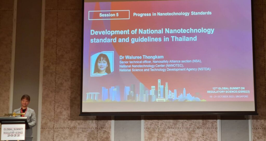 Dr. Wannee Chinsirikul, Executive Director of NANOTEC, was invited as a co-chair for Session on Nanotechnology in Agri-products and Feed at the 12th Global Summit on Regulatory Science (GSRS22). The event was co-hosted by Singapore Food Agency (SFA) and the Global Coalition for Regulatory Science Research (GCRSR) under the theme of “Advances in Nanotechnology for Food and Medical Products: Innovations, Safety and Standards” during 19-21 October 2022, Singapore.