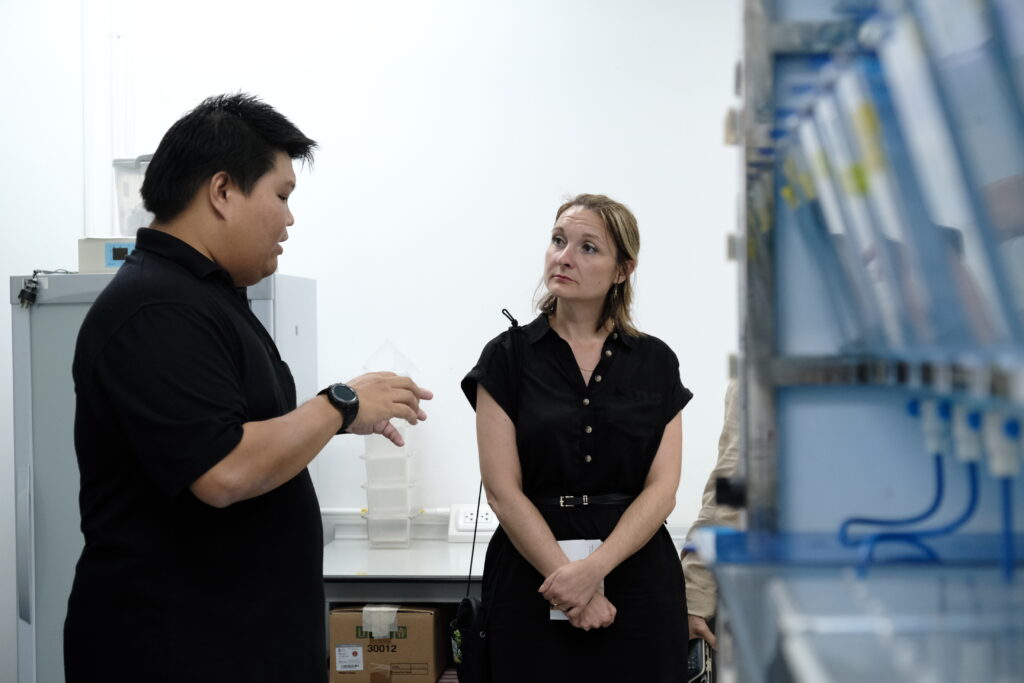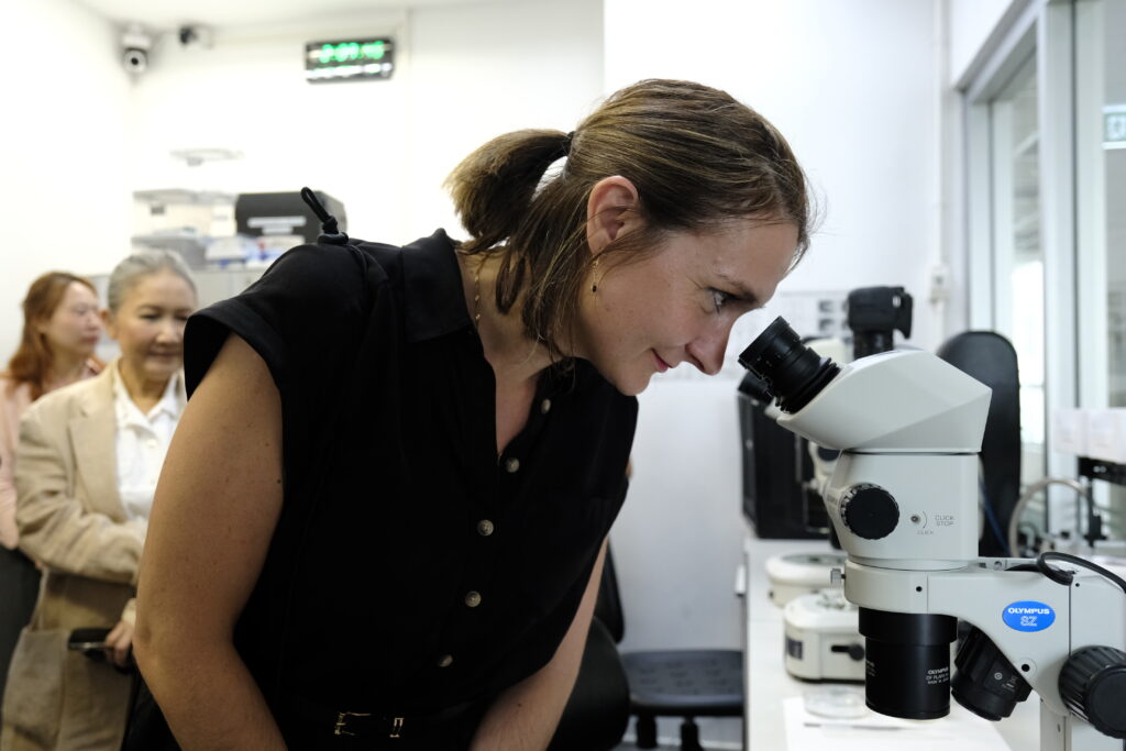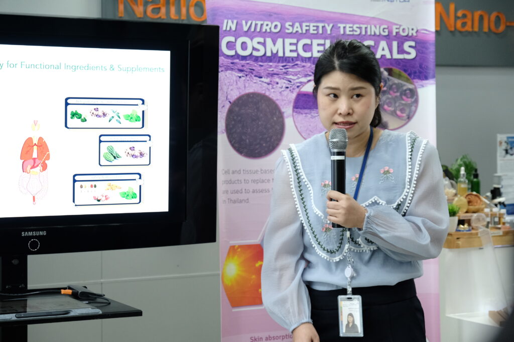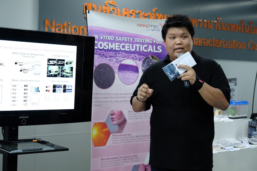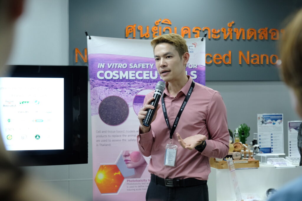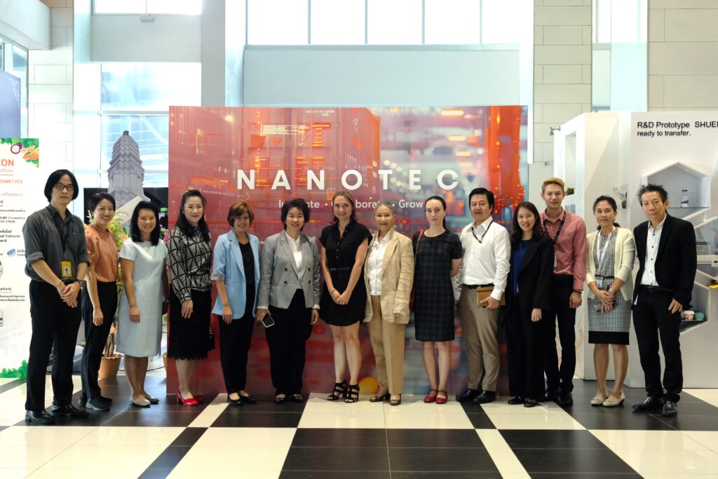 During this visit, the delegation visited the laboratory of the Advanced Nanotechnology Characterization, Safety, and Informatics Research Group. They also had the opportunity to learn more about KronoLife Co., Ltd., a startup supported by the National Science and Technology Development Agency (NSTDA), which demonstrates significant potential to engage in the Cosmeceutical and Herbal Innovation with Business Link (CIB) project. This project is designed to foster business linkages within the cosmetics, herbal extracts, and cosmeceutical sectors, with a focus on expanding market access both domestically and internationally. The delegation was introduced to the research outputs on testing and analysis, as well as herbal extract innovations, which aligned with their interest in advancing the cosmetics and cosmeceutical industries. The visit underscored NANOTEC’s capabilities in nanotechnology and its potential to meet the evolving needs of these industries.