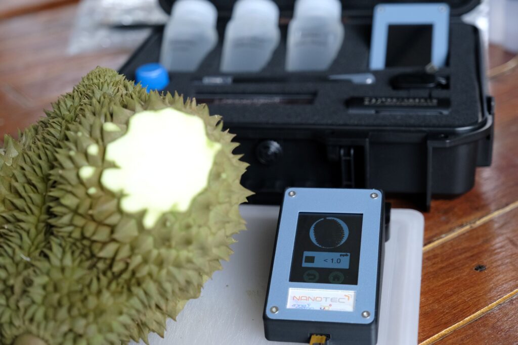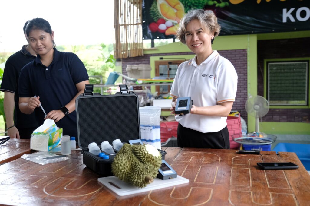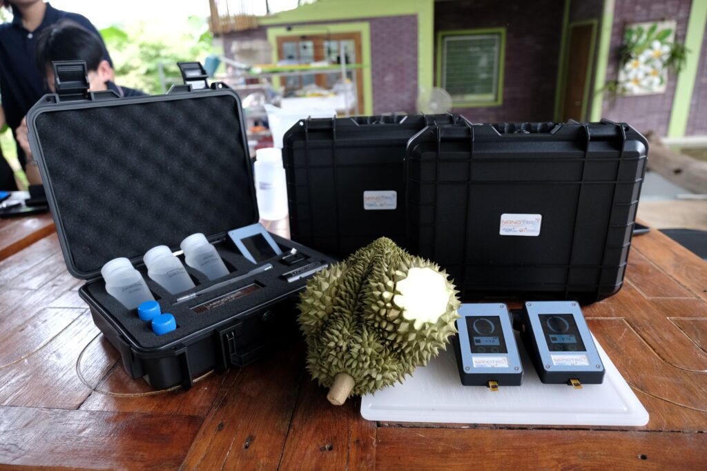 Recently, the NANOTEC team conducted field testing in Wang Chan District, Rayong—an area within the Eastern Economic Corridor of Innovation (EECi)—an important agricultural innovation hub. Durian samples from local farms were tested on-site, helping build confidence in the safety and quality of produce from the region.