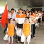 The roaring sound of cheer, laughter, and comradely filled the gymnasium of Sirindhorn Science Home during the 3rd Annual MTEC/NANOTEC Sports Day on April 27. Aj. Sirirurg (NANOTEC) and Aj. Werasak (MTEC) gave the Opening Remark prior to the swimming competition. A combined force of over 100 participants from both MTEC and NANOTEC came to give their support to their athletes. Some staff also included their siblings as part of the cheering team turning this event into a friendly and family affair which was a welcome addition.
