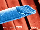 SEM image of a textile fiber to which silver nanoparticles have been applied. (Source: Hohenstein Institute)