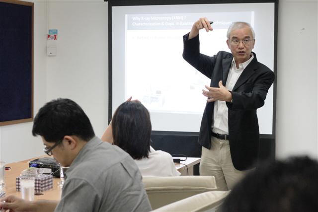Having representatives from equipment manufacturers visit and give a technical presentation is considered an effective way for lab technicians and researchers to learn new ways of handling/operating specific lab equipment. Recently, NANOTEC hosted the visit of Dr. S H Lau, Vice President of Business Development from Xradia to give a talk on “Non invasive 3D and 4D Characterization of Buried and Hierarchical Structures in Soft & Hard Materials with a Lab based X-Ray Microscope (XRM)”.