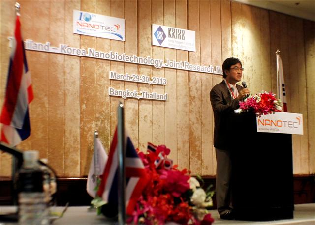 The 3 days meeting from March 29-31 in Bangkok is organized by NANOTEC and KRIBB to promote research collaboration opportunities between Thailand and Korea. A total of 25 experts took turn to present technical papers and exchange dialogue on selected research projects. In addition, the program also included the Networking and Discussion session on 4 themes: Nanomedicine, NanoSafety, and NanoBiosensor. The 4th meeting in 2014 will take place in Korea hosted by KRIBB.