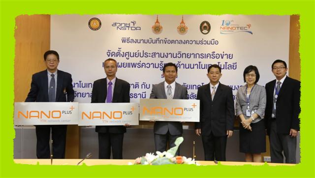 NANOTEC signed 3 Memorandum of Understanding (MOU) with 3 NANO Plus (TTN network center) to collaborate in promoting public awareness of nanotechnology in schools. The 3 NANO Plus (TTN network center) are based in the north (Rajamongkol Lanna University of Technology, Chiangrai), northeast (Udon thani Rajabhat University), and central region (Rajamangala University of Technology Suvarnabhumi) of Thailand. The signing ceremony took place at NANOTEC on May 29, 2013