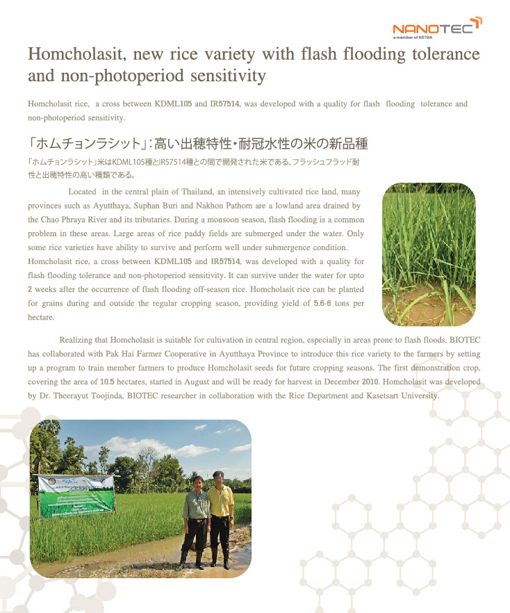 – Homcholasit, new rice variety with flash flooding tolerance and non-photoperiod sensitivity - The Nanosafety and Ethics Strategic Plan