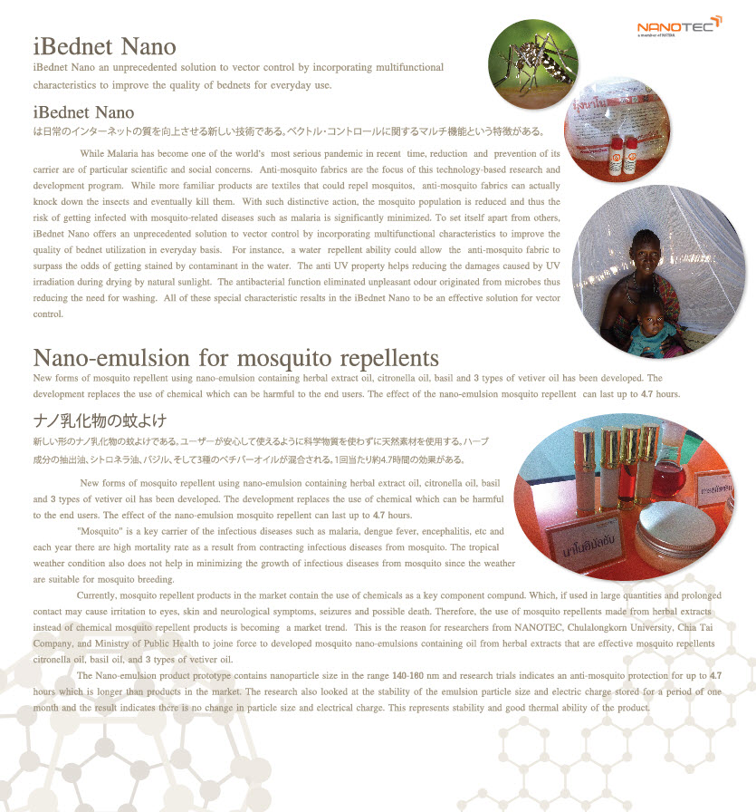 – iBednet Nano & Nano-emultion for mosquito repellents