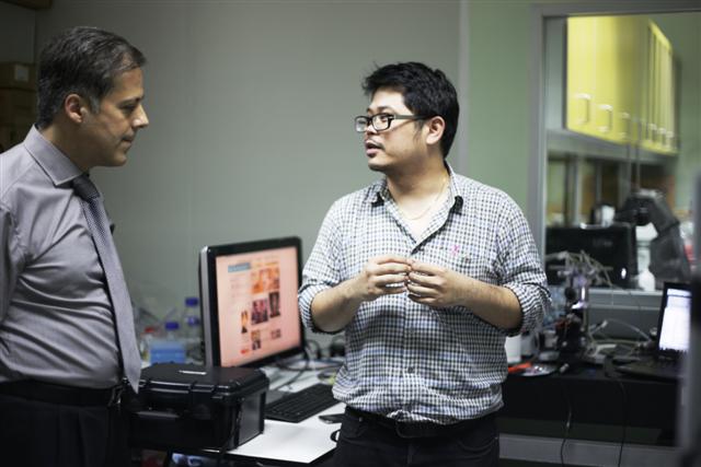 “Thailand is one of five countries in Asia, the other four being China, Japan, India and South Korea, that participate in this collaboration” said Dr. Luciano Musa, Head of ALICE ITS Upgrade Project in his presentation on “About ALICE” during a NANO Talk session at NANOTEC. “The participation means that there are greater opportunities for scientists, researchers and engineers to exchange new knowledge and strengthen national research capacity”. Dr. Musa was currently in town to meet with NECTEC and took this opportunity to also meet with Prof. Sirirurg Songsivilai, Executive Director of NANOTEC and visit Integrated Nanosystem Lab (INS). It is agreed that INS researchers will work on some pilot bonding of electrode contacts to see if it can be applied to the ITS Upgrade Project.