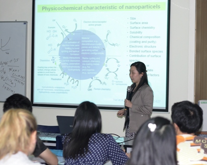 On Nov 1, Dr. Rawiwan Maniratanachote a researcher at Nano Risk and Safety Assessment Lab (NANOTEC) was a guest speaker at AIT Nanotechnology Center. The title of her talk was NanoSafety: Safety Implication of NanoSilver. It covers topics related to potential exposure to nanoparticles (lung and inhalation and skin and dermal exposure), silver nanoparticles (health and environmental aspects), and nanosafety research activities at NANOTEC.
