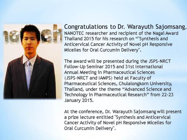 NANOTEC researcher to receive Nagai Award Thailand 2015