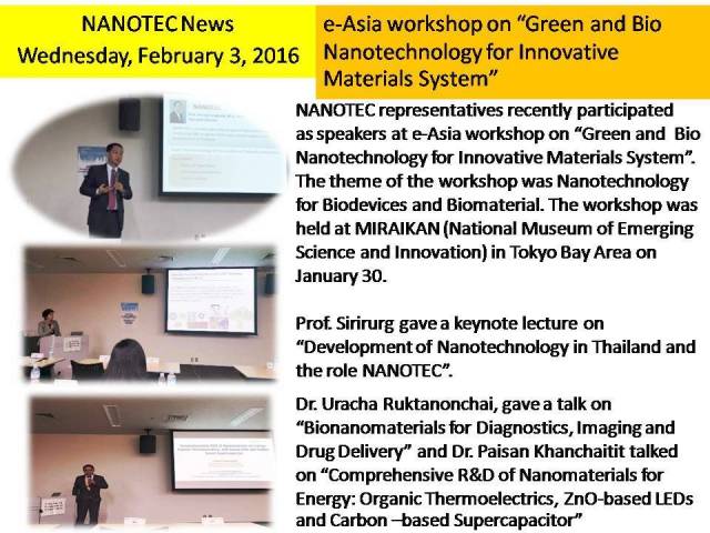 e-Asia workshop on “Green and Bio Nanotechnology for Innovative Materials System”