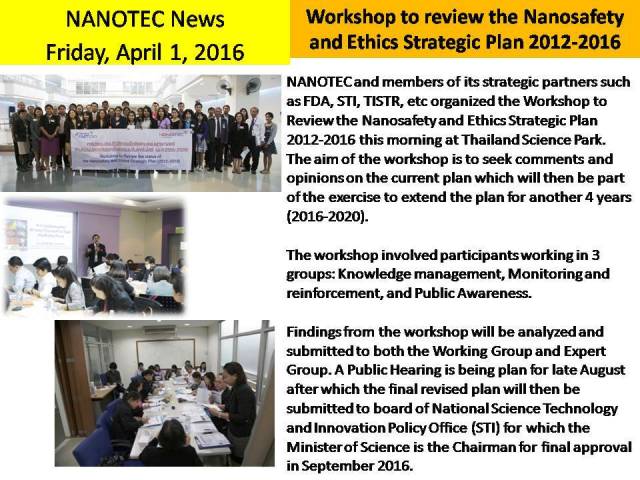Workshop to review the Nanosafety and Ethics Strategic Plan 2012-2016