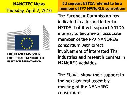 EU support NSTDA interest to be a member of FP7 NANoREG consortium